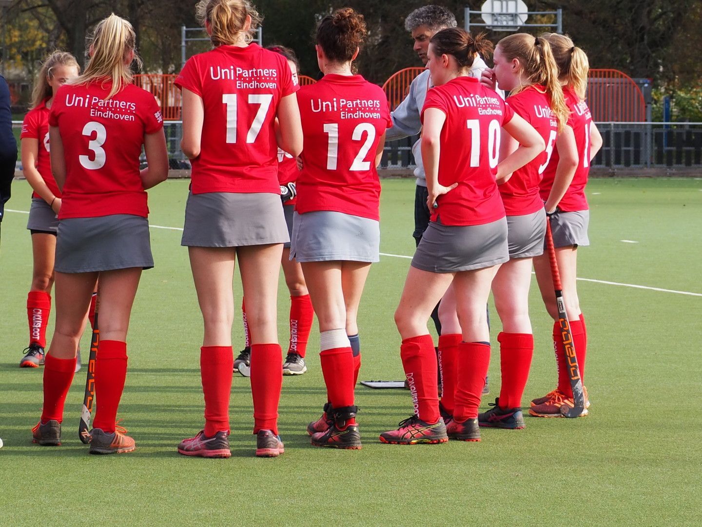 Rode polo met wapen van E.S.H.V. Don Quishoot, Rode kousen met een grijs broekje/Rokje